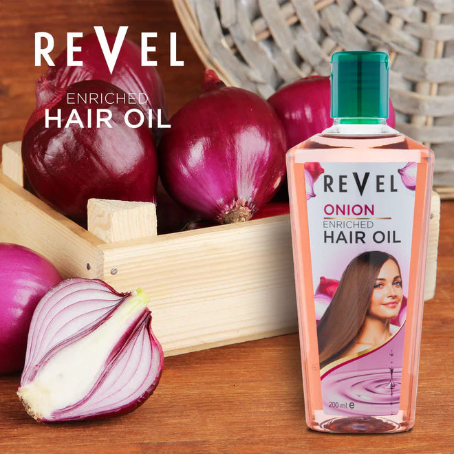 REVEL Onion Enriched Hair Oil is the perfect blend of onion oil. Its unique formulation strengthens each hair strand from root to tip, giving your hair with softness & shine you always desired